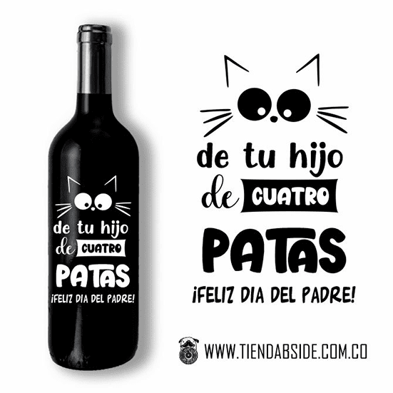 Botella de Vino tinto, vino blanco o Rosado de 750 ml con Mensaje para un  papá perruno.