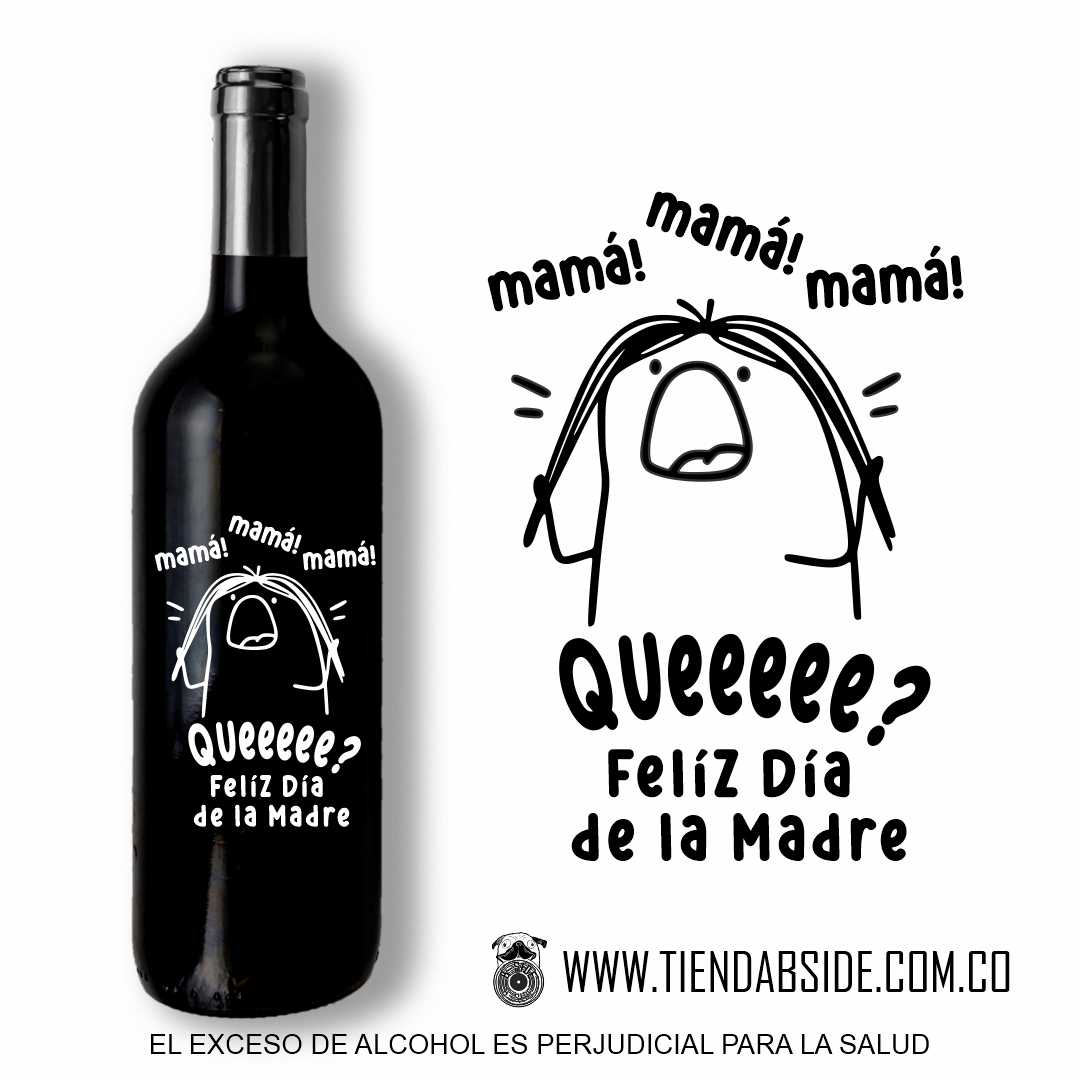 Botella de Vino tinto, vino blanco o Rosado de 750 ml con Mensaje para Mamá.   Regala un detalle Único y diferente…