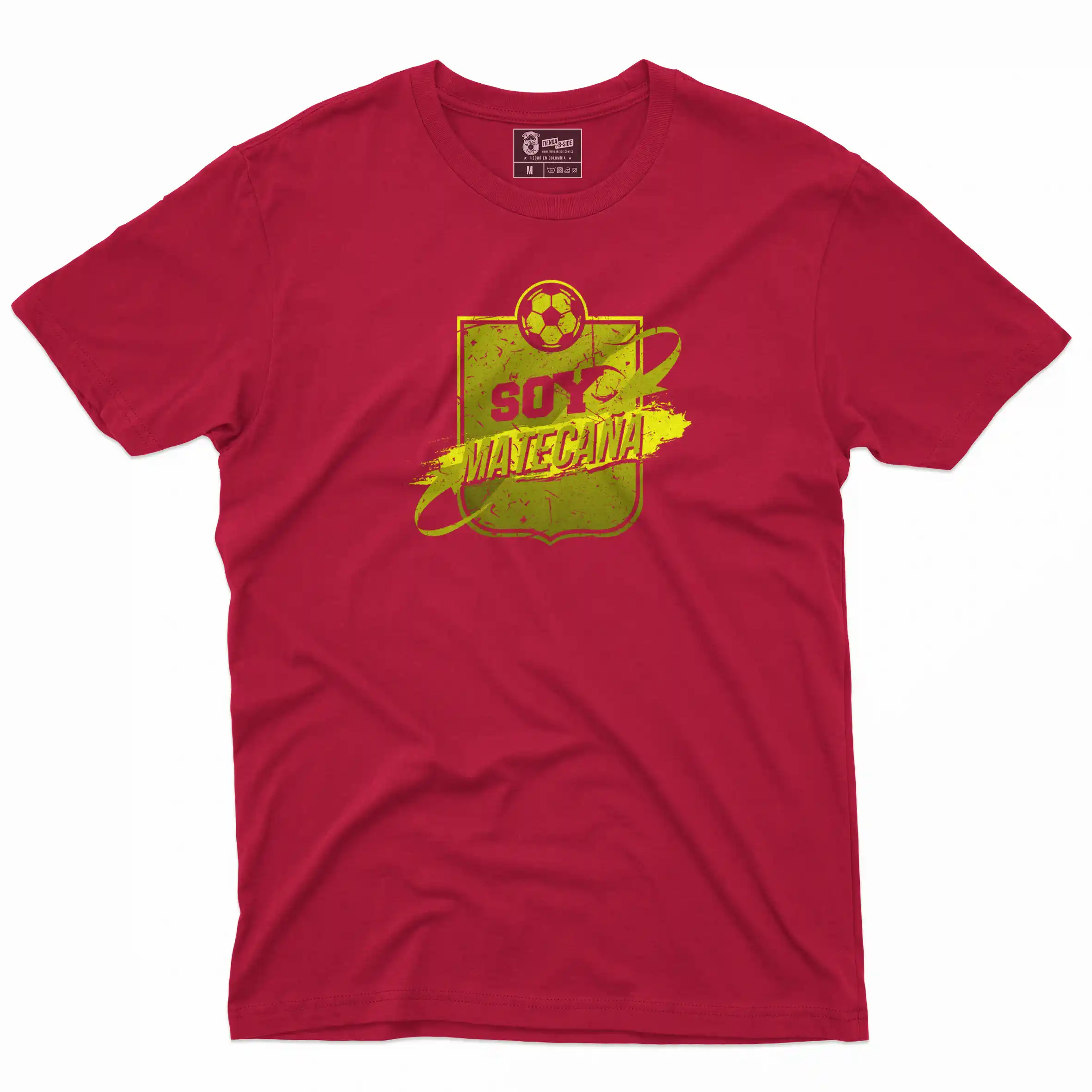 Lleva el orgullo futbolero en el pecho con la camiseta «Soy Matecaña”. Hecha en algodón suave y resistente, es perfecta para apoyar al Deportivo Pereira en el estadio, en la calle o desde casa. El diseño simula el escudo del equipo, símbolo de historia y pasión que todo hincha verdadero reconoce. Es una camiseta alusiva al Deportivo Pereira que combina comodidad y estilo, ideal para partidos, entrenos o encuentros entre amigos. También funciona como souvenir de Pereira para visitantes que quieren llevarse un pedazo de la cultura futbolera local. Porque ser matecaña no es moda: es una herencia que se vive y se viste.